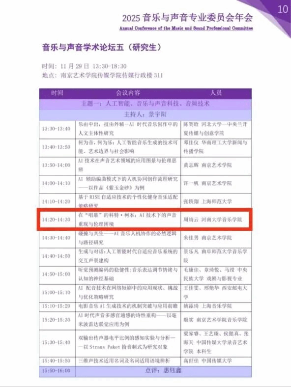 研究。她宣讲的论文题目为《在“唱歌”的科特·柯本:AI技术下的声音重现与伦理困境》,聚焦于AI声音克隆技术“复活”已故歌手声音的现象,围绕科特·柯本的声音“重现”展开深入探讨。汇报中,她采用跨学科方法,结合后现代文化理论与解构主义哲学展开分析。先拆解AI重现声音的技术路径——通过数据提取、模型训练、合成生成实现“声音孪生”;再从后现代视角定义其为“数字时代后现代拼贴91热爆