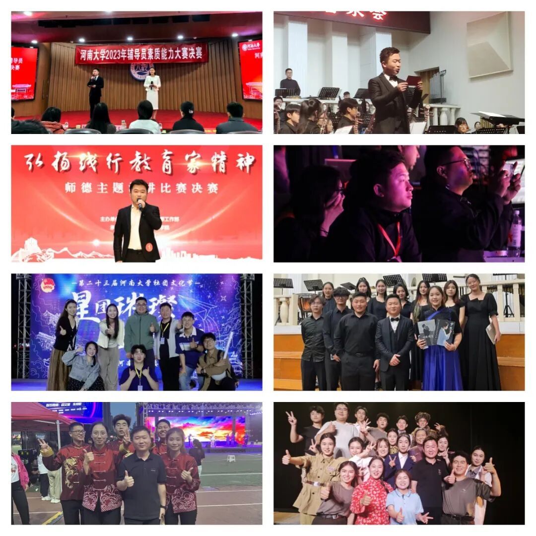 第二十三届学生社团文化节晚会、第二届大学生文化艺术节之青春歌会等重大文艺活动。排练现场,他既是艺术指导,也是思政导师——讲解红色曲目背后的历史故事,引导学生感悟青春责任,让学生在艺术实践中厚植家国情怀。
