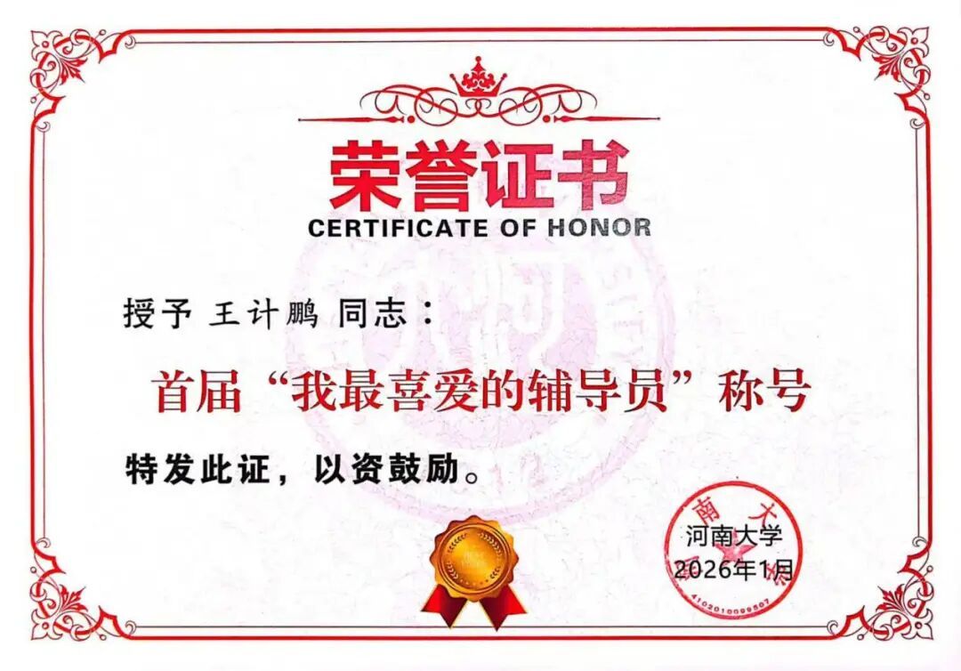 辅导员王计鹏凭借扎实的工作实绩与深厚的育人情怀,在激烈角逐中脱颖而出,荣获校级“我最喜爱的辅导员”称号。